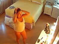 Hiddencam in the bedroom. A hidden camera caught a naked tanned mature with smooth pussy and...