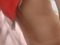 Beautiful chick changes clothes on the beach.